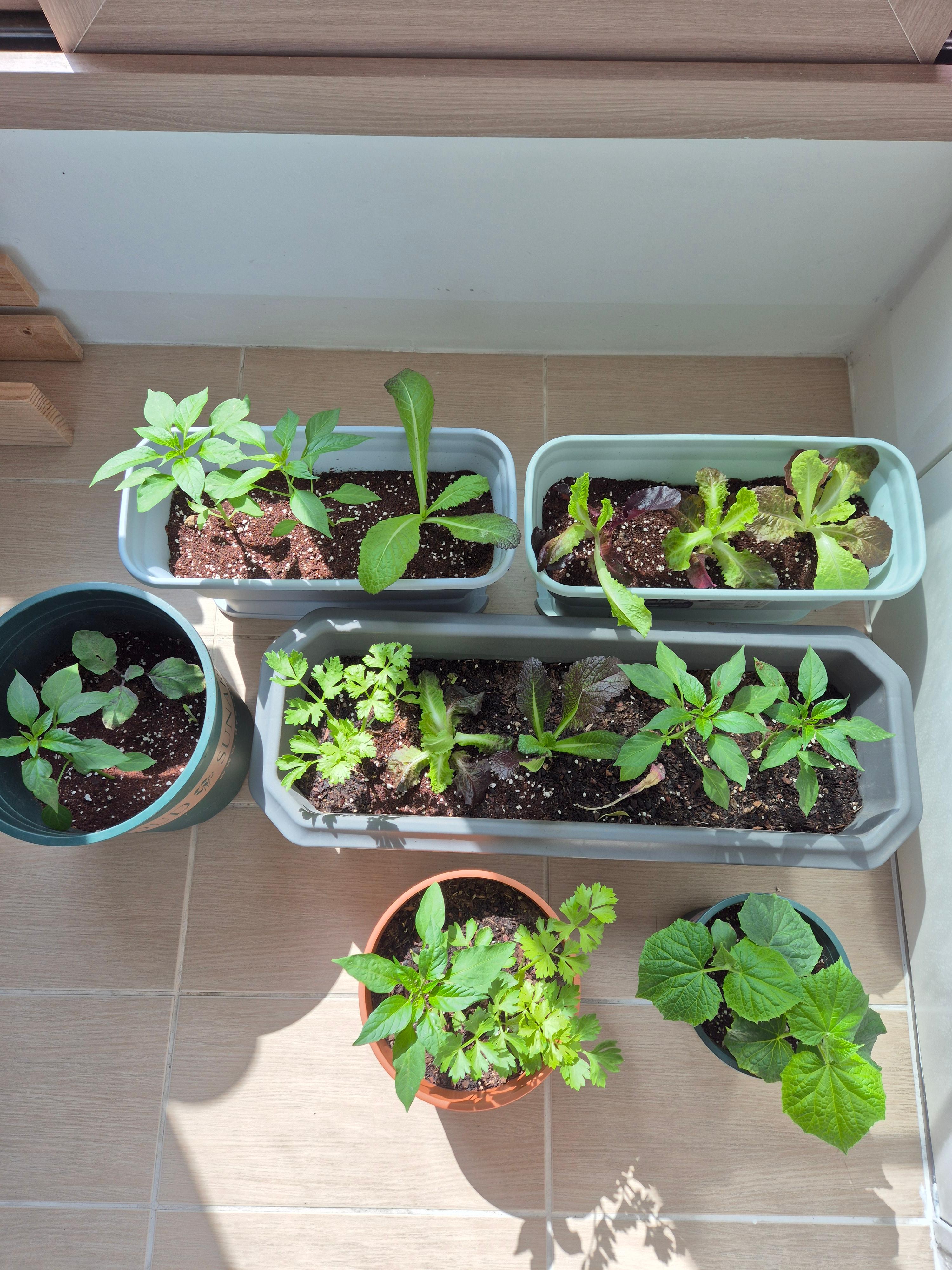 저희 집도 상추, 고추, 오이, 셀러리, 갓 등을 심어보았어요.