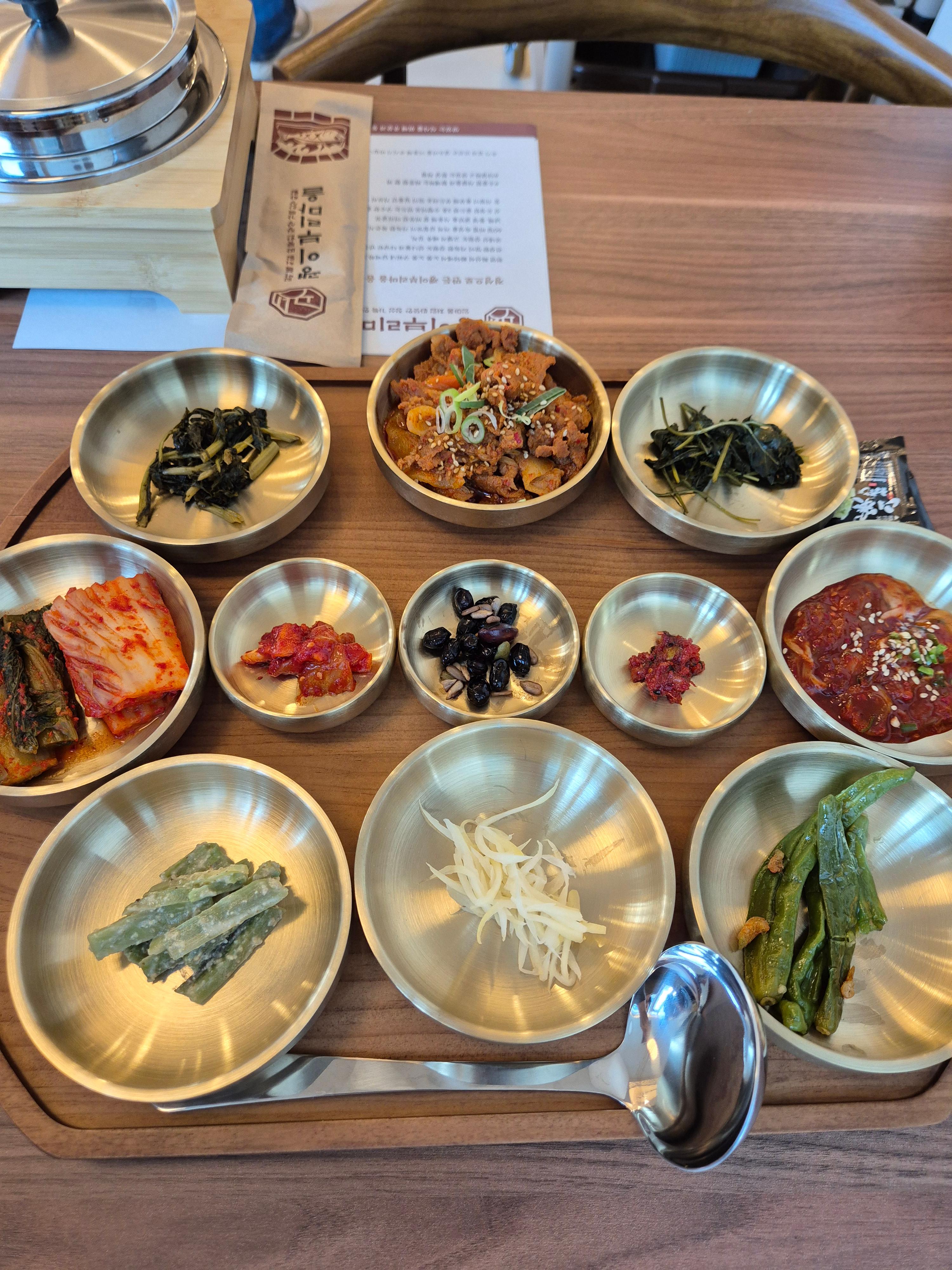 기본 반찬이 정말 푸짐하게 나오는데, 각종 나물과 젓갈, 등 깔끔하고 정갈한 반찬들이 입맛을 제대로 돋워줍니다.
