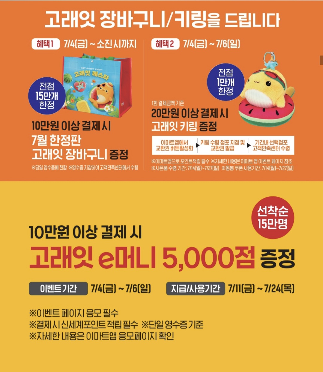 [이마트 고래잇 페스타] 7월 4~6일 3일간 초특가 세일 총정리|치킨·삼겹살·수박 반값 정보 한눈에!